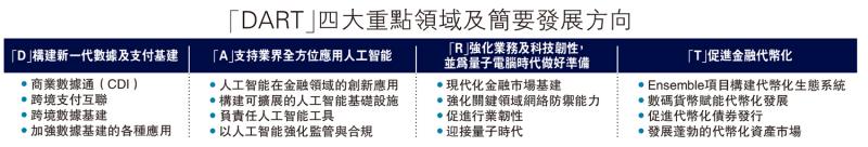 金管局昨日推出“金融科技2030”,并详述所涉四大重点领域,统称“DART”,包括数据、人工智能、韧性和代币化,涉及40多个项目和措施。金管局副总裁李达志表示,每个重点领域均包含一系列措施,希望为后续香港金融发展建立良好基础,以及拓展进一步发展的空间。