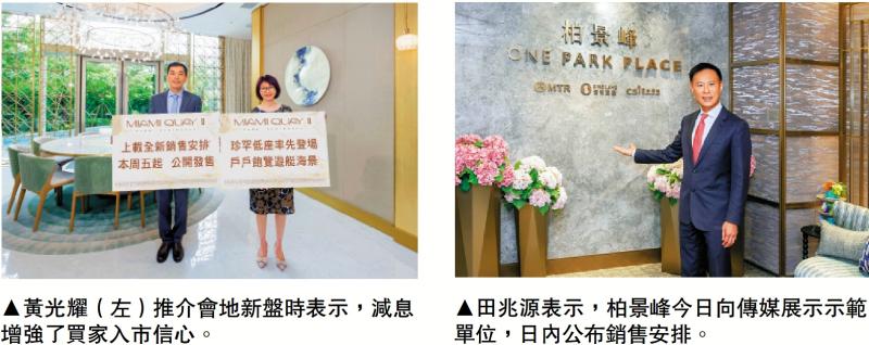 左图:黄光耀(左)推介会地新盘时表示,减息增强了买家入市信心。右图:田兆源表示,柏景峰今日向传媒展示示范单位,日内公布销售安排。