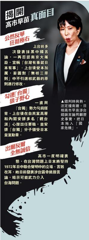 图:错判时与势,注定撞南墙。日相高市早苗涉台错误言论罔顾历史事实,把日本拖入“国家危机”。