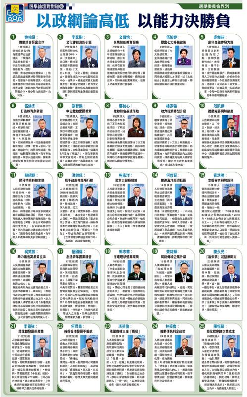 16号候选人吴英鹏身兼香港与内地双重执业律师资格,深耕跨境法律服务20余年,政纲聚焦四大核心:以专业所长助力立法会高品质立法,全面准确贯彻“一国两制”,推动行政立法良性互动;推进大湾区规则衔接和北都专属立法工作,助力香港融入国家发展大局;香港应更积极地参与国家涉外法治和国际商业规则建设;推进完善特区的反外国制裁法律,培养具国际视野和多元背景的法律与商业人才。