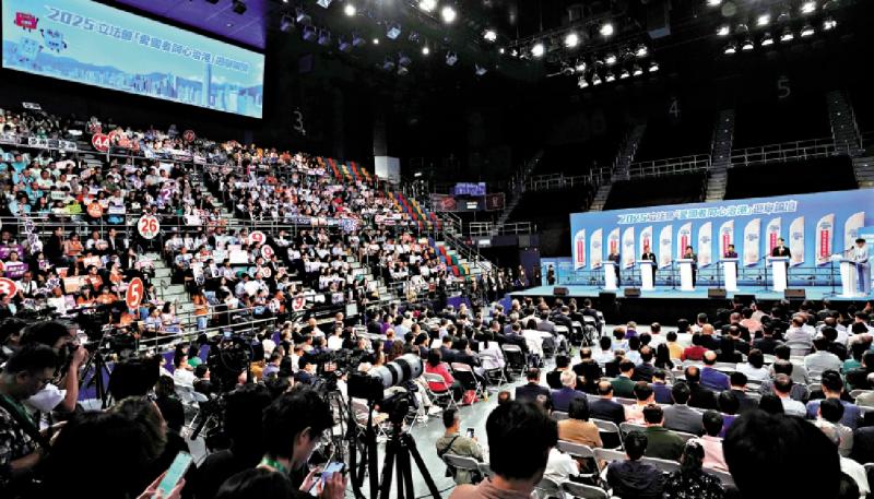 由特区政府主办的立法会“爱国者同心治港”选举论坛,选举委员会界别论坛昨日在伊利沙伯体育馆举行,现场气氛热烈,50位候选人同台阐述政纲,多位选委会委员接受《大公报》访问时表示,50位候选人同台交锋,让选民直观了解候选人的参选政纲与现场应变能力,真正实现了“以政纲论高低、以能力决胜负”的良性竞争。