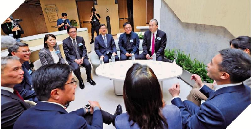 图:李家超与有意落户园区的顶尖科企代表交谈。