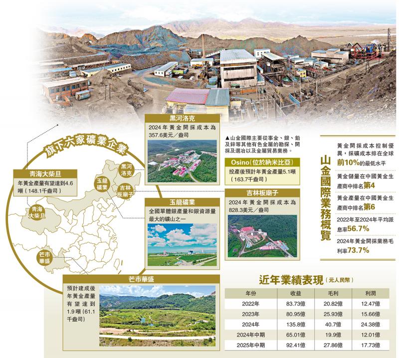 业绩表现方面,山金国际的经营收益及淨利润近年均实现显著增长。于2022年至2024年分别录得收益83.73亿元(人民币,下同)、80.95亿元及135.80亿元,2025年上半年更达92.41亿元,同比增长42.17%;期内淨利润17.73亿元,同比上升47.64%。