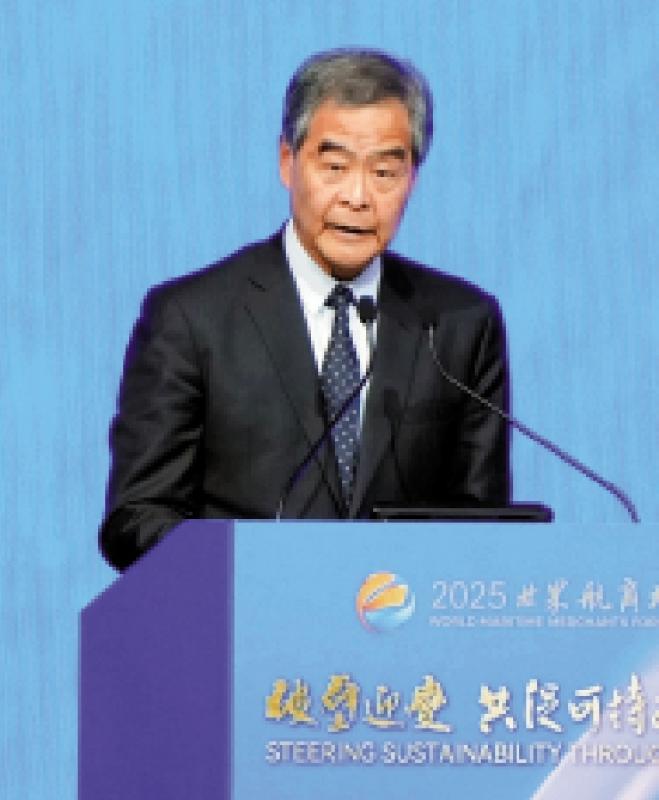 梁振英提出三点建议,一是推动可持续发展,维护全球航运系统的稳定与韧性,避免市场分割;二是拥抱科技创新,善用数据与绿色能源等技术,强化行业智能化发展;三是促进航运服务整合,加强航运金融、法律及管理等服务,推动香港与内地产业链结合,提升高增值服务能力。