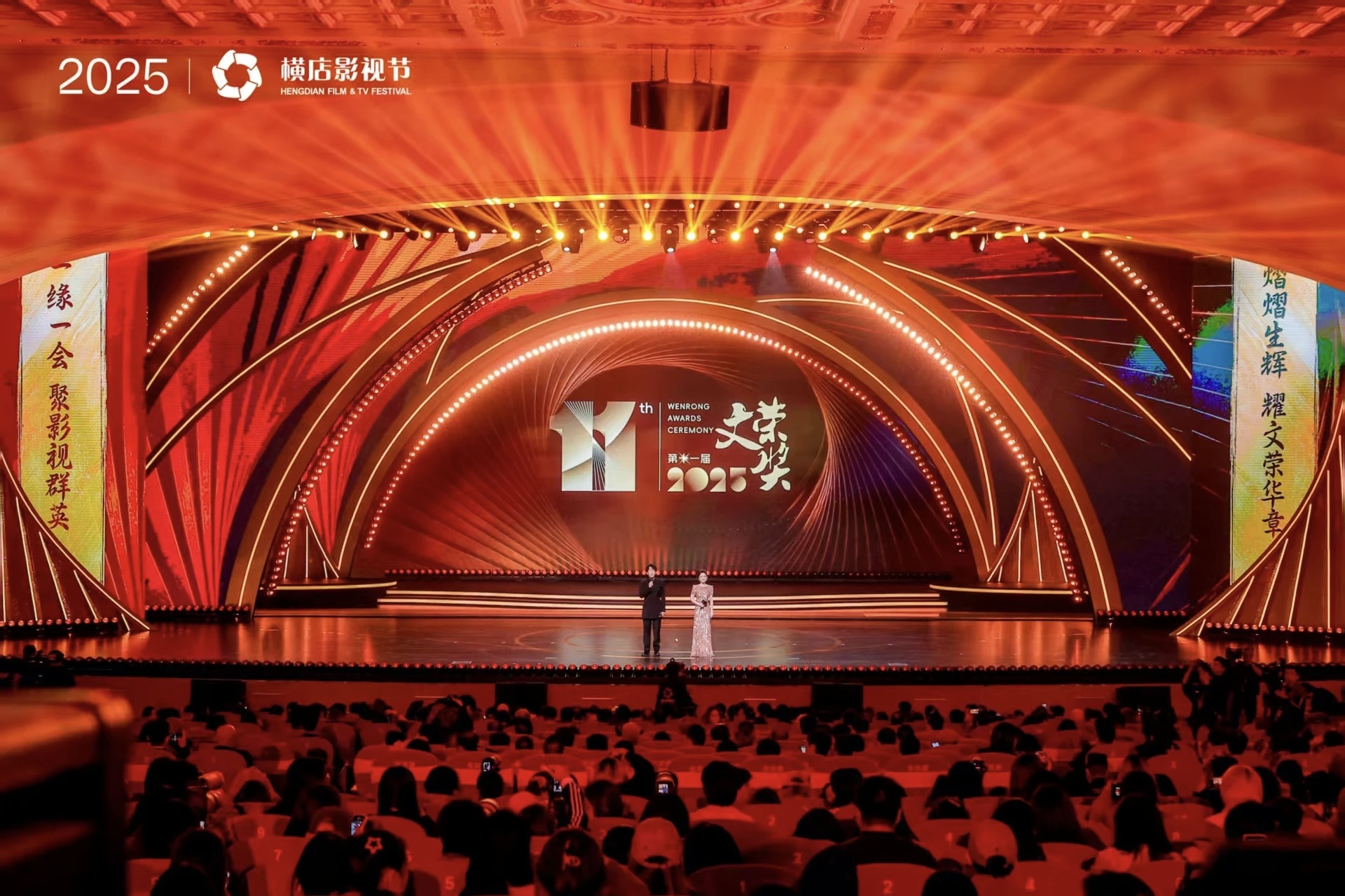 第十一届“文荣奖”颁奖典礼围绕横店影视产业的发展、“横漂”群体的故事、影视创作的匠心精神等展开,传达横店作为影视产业标杆,在时间流转中的行业变迁轨迹,以及影视从业者群像的生动面貌,打造一场既庄重又充满创意的艺术盛宴。