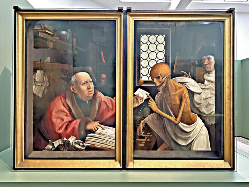 图:扬.普罗福斯特(Jan Provoost)描绘的双联祭坛画《守财奴与死神》。\作者供图