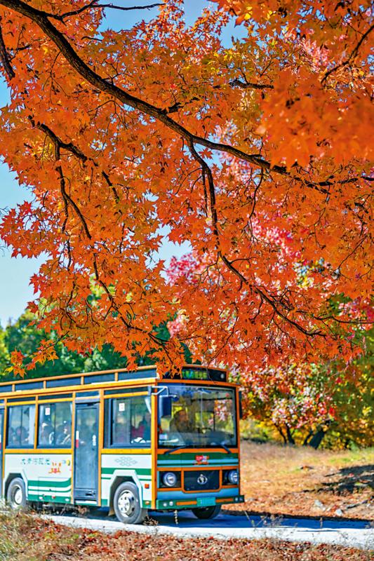 图:时值深秋,内蒙古乌旦塔拉五角枫森林公园棵棵枫树点缀秋日草原,美如童话。\新华社