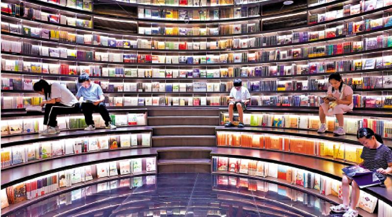 图:河北石家庄一书店内,小朋友们正在阅读。\中新社