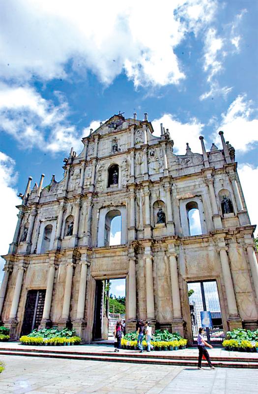 图:澳门大三巴牌坊是天主之母教堂(即圣保禄教堂)正面前壁的遗址。
