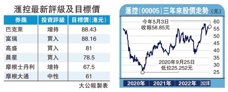 高盛指滙控的估值吸引,现水平股价是2023年预测有形市账率(P/TB)的0.9倍,相对2024至2025年有形股本回报率(RoTE)预计可达13%,意味整体回报率约为9%至10%。高盛维持予以滙控的“买入”投资评级。