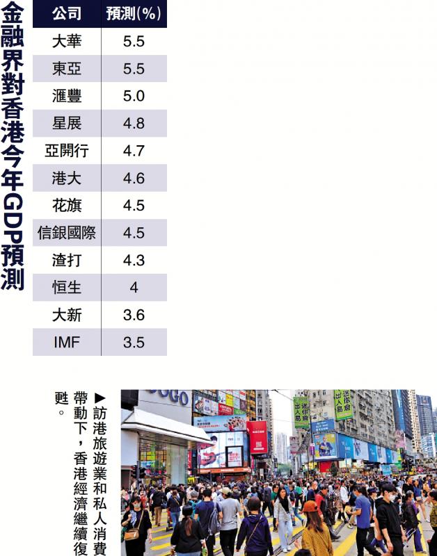 图:访港旅游业和私人消费带动下,香港经济继续复苏。
