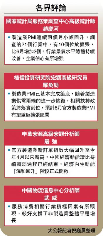 国家统计局数据显示,7月内地非制造业PMI(采购经理指数)为51.5,虽较前值回落1.7个百分点,但已连续7个月保持扩张态势。市场人士相信,今年以来非制造业PMI始终保持扩张势头,显示行业总体延续平稳增长格局。