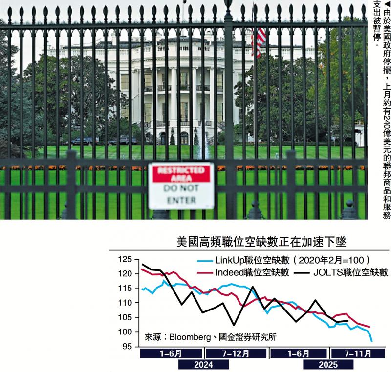 在当前数据真空期结束之后,官方发布的就业和消费数据大概率将比市场预期更为难看。其他就业数据,比如ADP、挑战者调查(私营部门裁员数据)、首次申请失业救济人数,以及职位空缺人数都呈现持续下滑趋势,这些指标预示着经济基本面的持续恶化。
