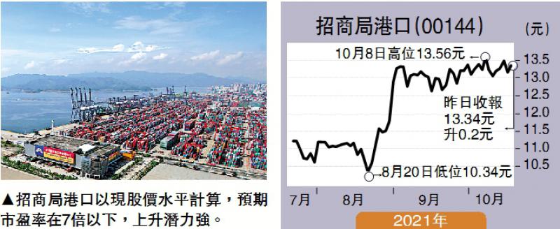 至于招商局港口的基本因素强,以现水平计算,此股的预期市盈率在7倍以下,反映股价偏低,以一个传统综合企业股份于保守市况之下惯性市盈率的12至15倍推算,此股的上升潜力可观,加上国内经济维持平稳增长,客观预期集团核心业务如港口业务、物流以至物业投资等收益可随经济平稳增长,加强中长线股价的上升潜能,成为投资机构入市的根据。