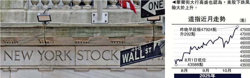 事实上,美国关税政策继续推高通胀,而政府持续停摆,美联储缺乏经济数据作参考,相信也是对进一步减息持审慎态度。其实,美国政府停摆造成负面冲击逐步扩大,可是美股却高企不下,无视美国政府持续停摆对财赤债务及实体经济不利的影响。由于美国经济数据暂停公布,包括对美联储订定利率政策有重要影响的10月通胀率,在经济数据讯息不明朗之下,投资者贸然高追入市,实在是承担着颇大风险,投资大行也难以制定适当投资策略。特朗普政府自10月1日关门大吉至今约一个月,似乎共和民主两党未有就财政拨款达成共识,有可能打破历史最长政府停摆纪录,该纪录为2018年12月22日至2019年1月25日,即合共关门35日。