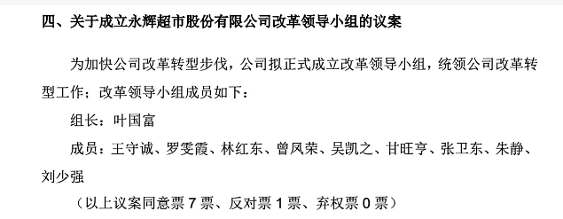 值得一提的是,作为“永辉改革小组”成员,王守诚是由叶国富带到永辉超市的人员之一。据极目新闻等媒体报道,今年2月,名创优品创始人叶国富携名创高管入驻永辉超市董事会,并成立由叶国富任组长的“永辉改革领导小组”,包括王守诚、罗雯霞、林红东、曾凤荣、吴凯之、甘旺亨、张卫东、朱静、刘少强9人。