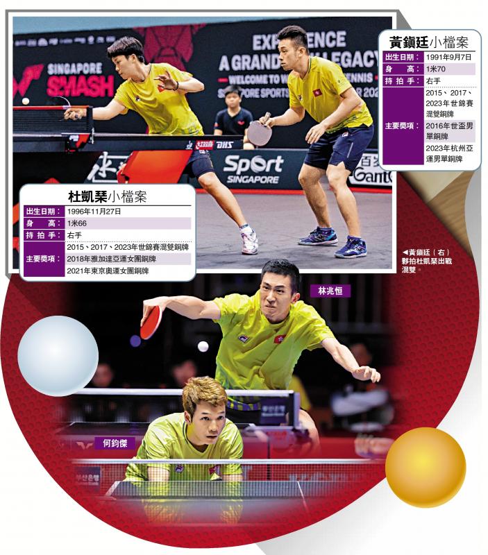 世界乒联(WTT)新加坡大满贯赛事昨天继续举行,中国香港首席混双组合“黄杜配”黄镇廷/杜凯琹于16强对阵匈牙利的伊锡基/马达拉丝,结果“黄杜配”轻松直落3局胜出,晋级8强。另外,港队组合林兆恒/何钧杰于男双首圈对阵新加坡组合,同样以局数3:0轻胜,晋级16强后将硬撼国家队“世一”拍档樊振东/王楚钦。\大公报记者 梁润森