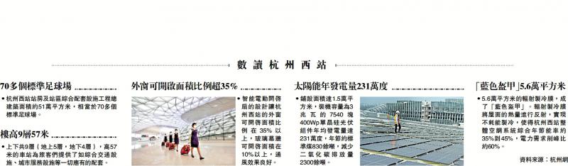 •杭州西站站房及站区综合配套设施工程总建筑面积约51万平方米,相当于70多个标准足球场。
