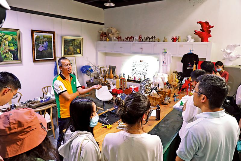 图:刘占强(左)把艺术比作成一种素养,而非单一的能力,是培养自身审美观的过程。\大公报记者乔辉摄