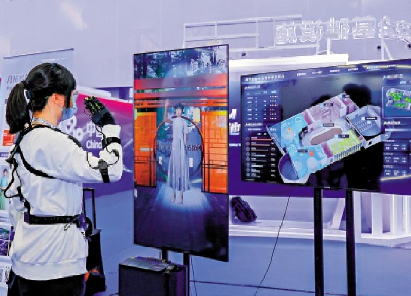 图:在广州举办的第二届数字政府建设峰会暨数字湾区发展论坛上,观众参观“数智”体验区。