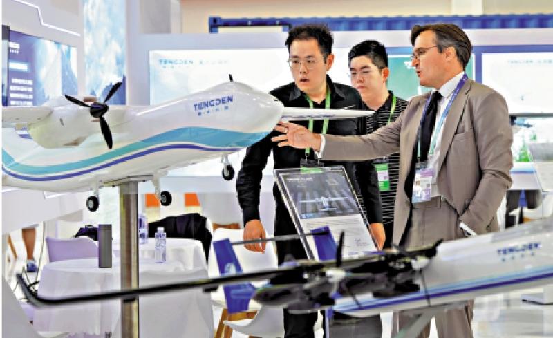 图:商务部把多间“反无人机技术”外企列入不可靠实体清单。图为北京链博会展出的先进无人机产品。\新华社