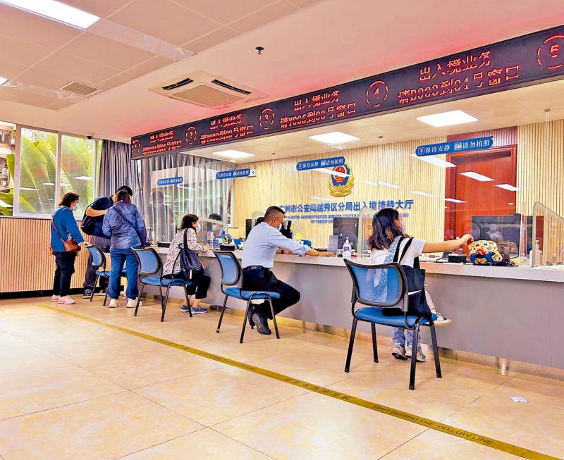 图:通过“免出示证件”通道通关,须同意边检机关采集核验面相、指纹等信息。图为内地居民在办理港澳通行证时,要预录入面相、指纹信息。