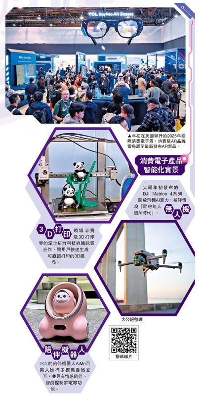 当AR眼镜能读懂眼神、翻译机消除语言鸿沟、全景相机重构影像叙事,“深圳智造”正以AI为纽带,将科幻场景搬进现实。今年以来,各类融合AI技术的智能硬件频频亮相国际展会,“深圳智造”正以引领者姿态,形成“专业+消费”双市场覆盖,在消费电子行业全球竞争中持续领跑。\大公报记者 郭若溪、毛丽娟深圳报道