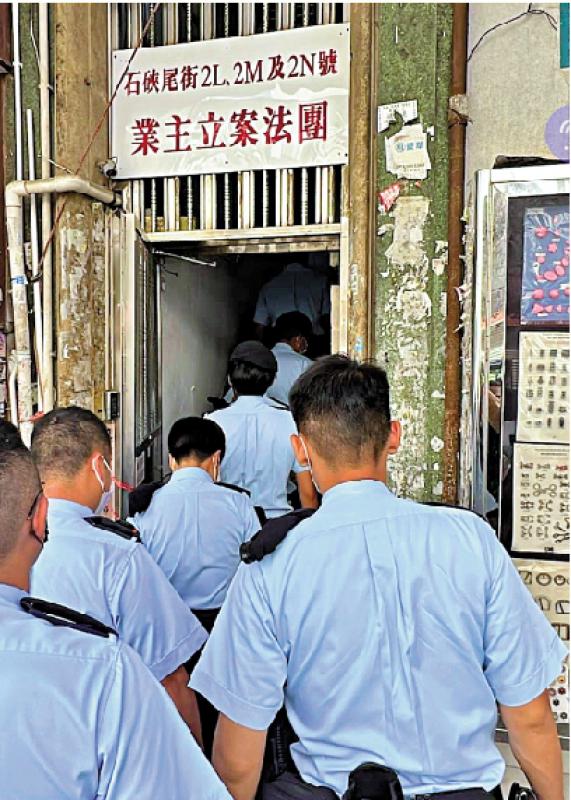 图:深水埗揭发五岁童命案后,大批警员到案发㓥房单位调查。
