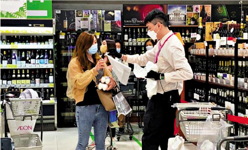 图:胶袋徵费实施以来,超市内顾客取用胶袋的情况仍然普遍。\大公报记者何嘉骏摄