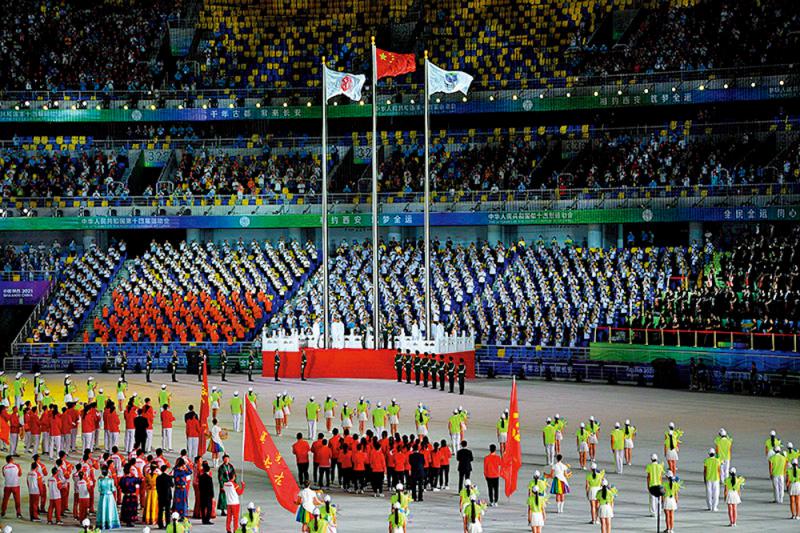 图:第15届全国运动会将于二○二五年举行,香港将首次共同承办全运会。图为第十四届全国运动会开幕式。