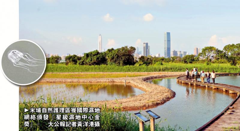图:米埔自然护理区获国际湿地网络颁发“星级湿地中心金奖”。\大公报记者黄洋港摄