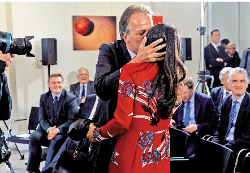 图:菲尔德(左)不仅曾出轨特拉斯,还于2019年当众亲吻时任外相亨特的妻子。\资料图片