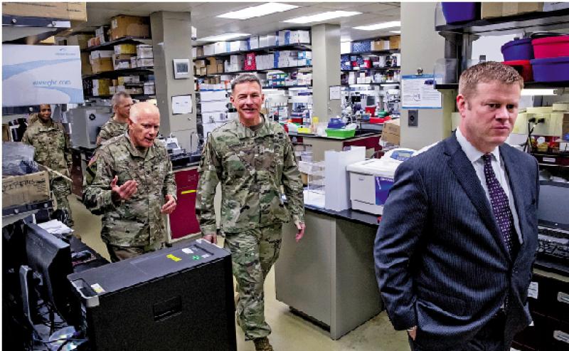 图:美军方高层时常出入德特里克堡实验室。\美联社