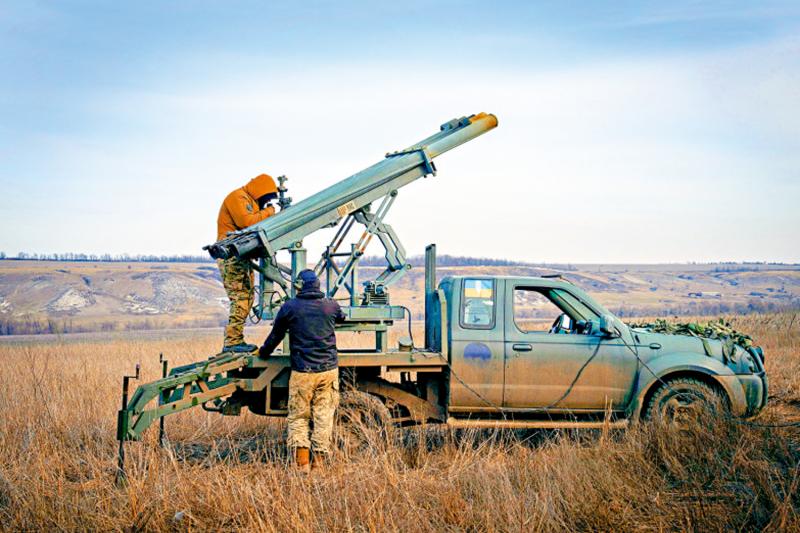 图:5日巴赫穆特附近,一名乌军士兵准备发射炮弹。\美联社