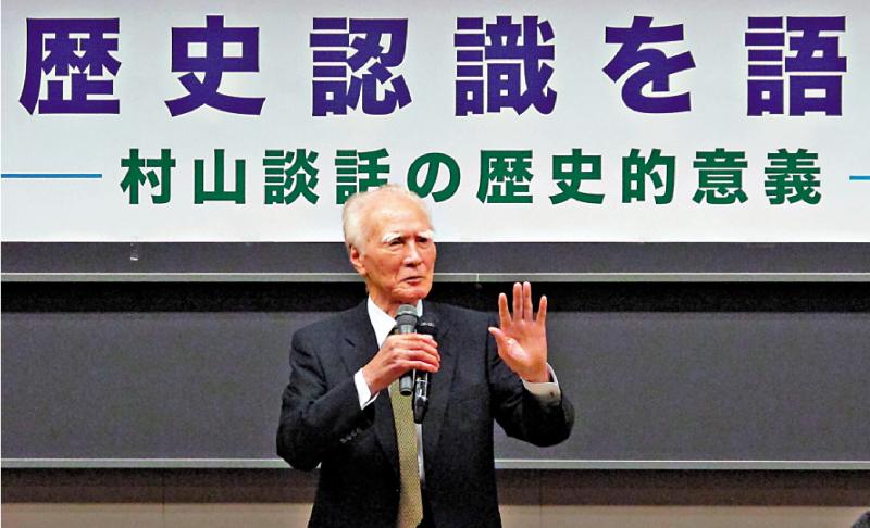 图:2014年5月,村山富市在东京发表演讲,介绍当年“村山谈话”出台经过。\中新社