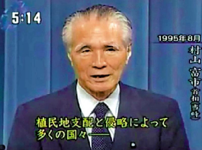 图:1995年8月15日,村山富市发表“村山谈话”,承认殖民统治和侵略,并表示“反省”和“歉意”。\资料图片