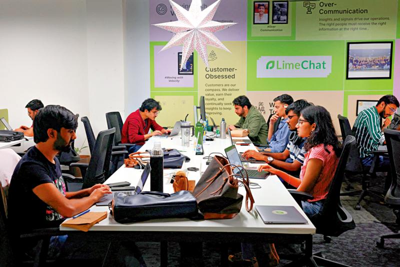 图:开发人员在AI初创公司LimeChat的办公室内工作。\路透社