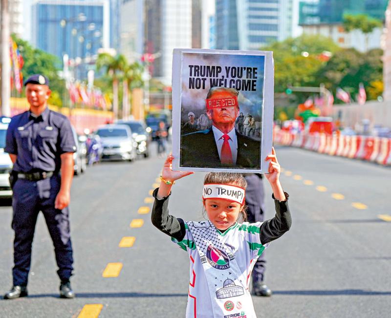 图:马来西亚民众26日参加反对特朗普的示威。\美联社