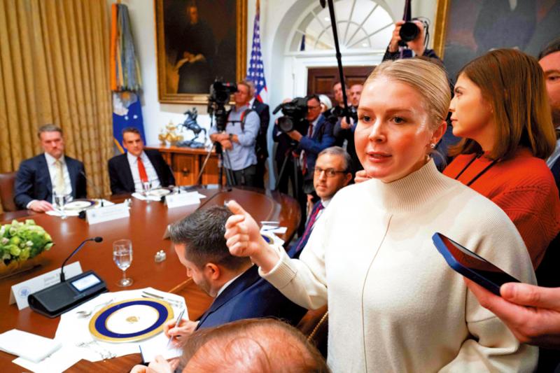 图:白宫新闻秘书莱维特猛烈抨击BBC。\法新社