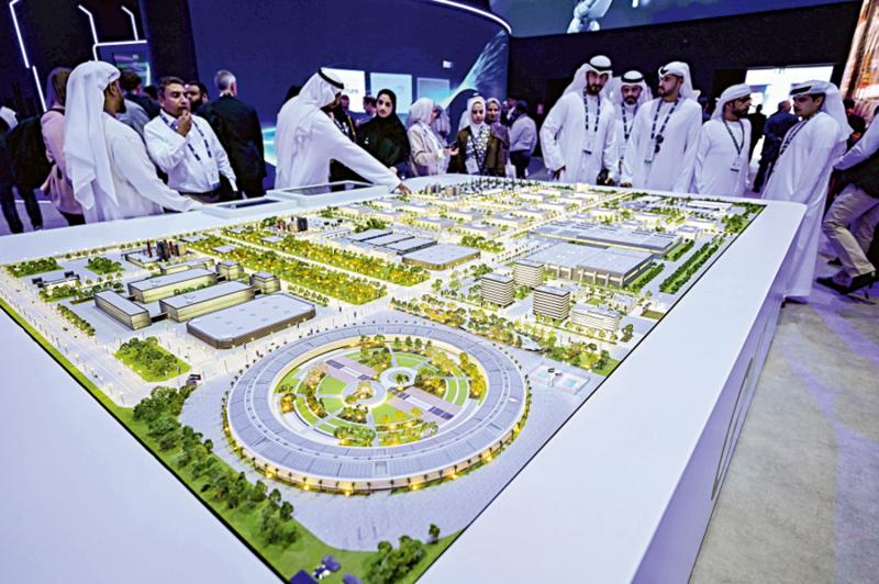 图:股市高涨与高额投资引发AI泡沫担忧。图为阿联酋正在建设中的“星际之门”项目模型。\法新社