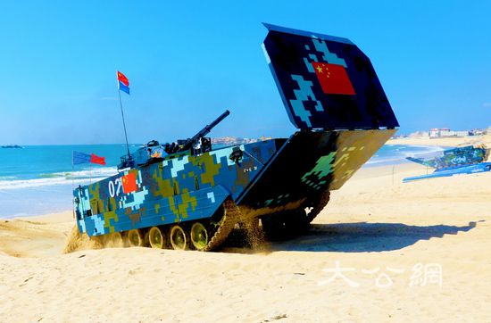 据介绍,作为中国海军陆战队的装甲主力,05式两栖装甲步战车,主要用于岛屿进攻战役的登陆作战,主要用于伴随两栖装甲突击车遂行开辟和巩固登陆场任务,是全世界现役唯一的滑板结构两栖装甲车辆。这台重达26吨的“庞然大物”,陆上最大时速能达到65公里,水上最大航速为40公里,“对于一台装甲车辆来说,这个速度是非常快的,甚至比有些快艇的速度还要快。”