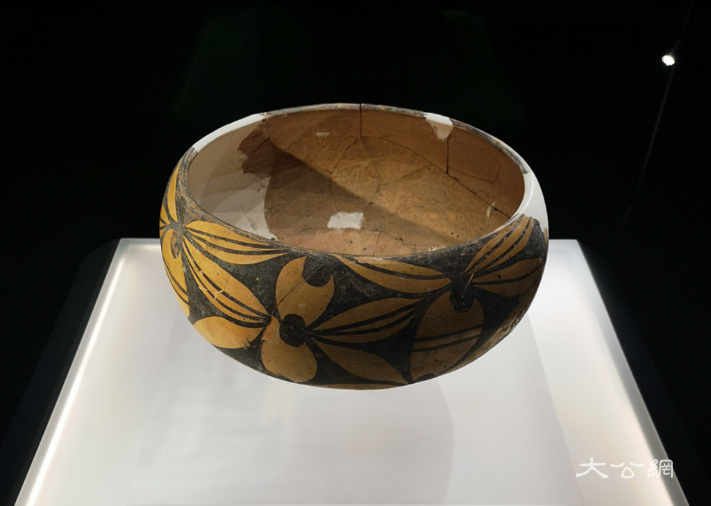 庙底沟的镇馆之宝之一花瓣纹彩陶钵,出土于庙底沟遗址第二次发掘,上方的纹饰是庙底沟最为突出的纹饰——花瓣纹。有不少学者认为,庙底沟时期的花瓣纹可以被称为华夏之花。在古汉语里,“花”和“华”同音同意同源,所以学者认为花瓣纹有可能是我们华夏民族名称的来源,或者是文化的基因。