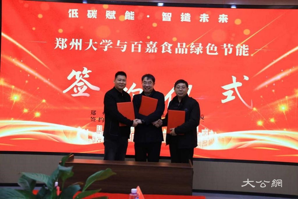 仪式最后,绿友环境总经理王江华、郑州大学李洪欣教授、百嘉食品总经理吴兴道共同签署合作合约,标志着三方在低碳绿色工厂升级领域的合作正式启动。此次三方合作将实现企业需求、高校科研、环保技术服务的精准对接,为食品行业绿色转型注入新动能。