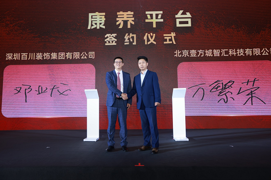 发布会上,百川携手北京壹方城联合发布共创康养装配式服务平台,哈佛大学博士、壹方城产业平台总师模式负责人赵亮出席并作了康养服务平台的战略发布,壹方城产业平台联合创收人、首席运营官万繁荣与百川集团副总经理邓业龙签署战略合作协议,双方围绕适老化、健康化场景的标准、材料、工法、运营与评价体系开展联合研发与示范应用,加速“康养+装配+运营”的规模化落地。